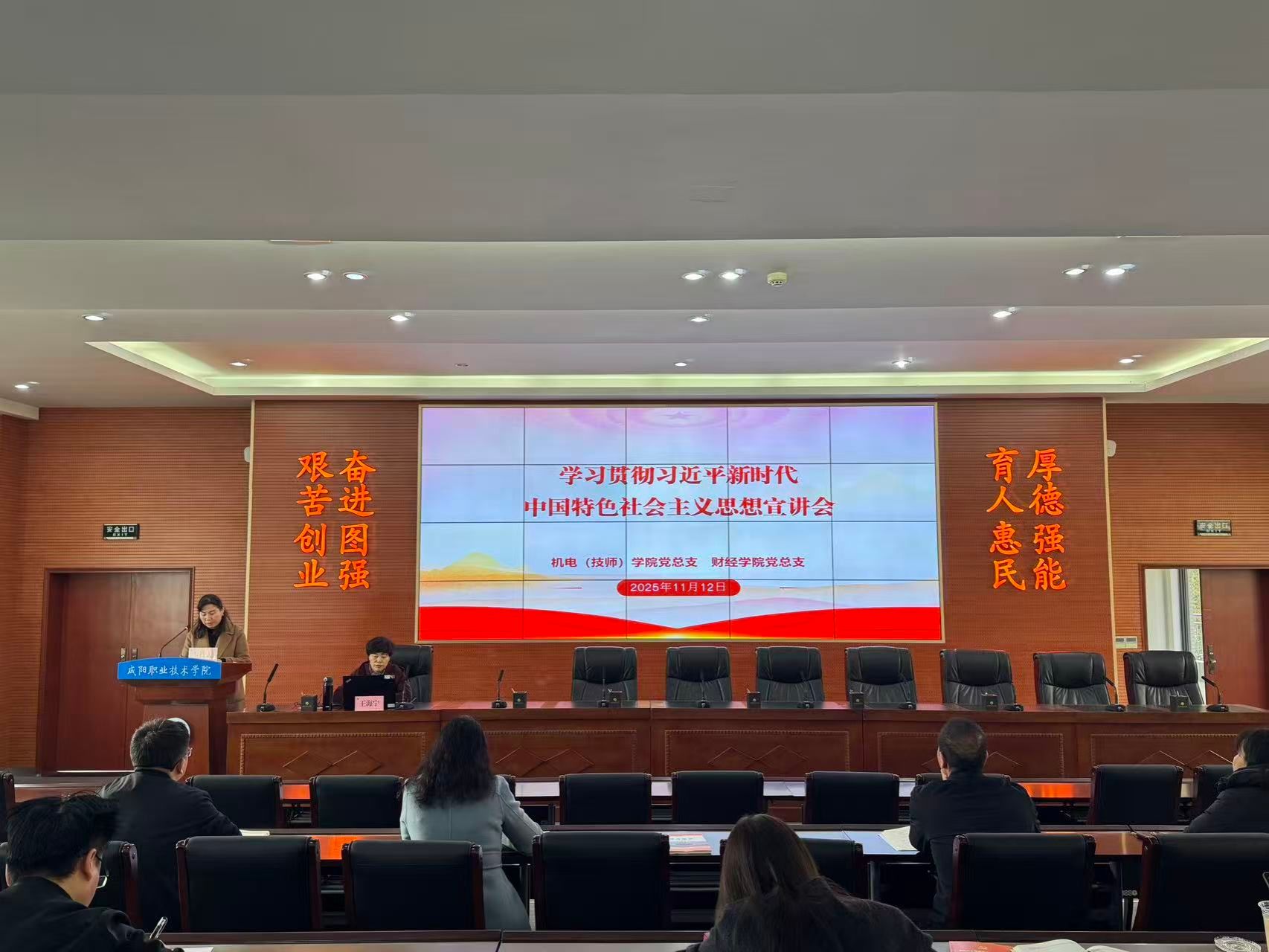 为深入学习贯彻习近平新时代中国特色社会主义思想,切实推动党的创新理论在教育教学一线落地生根,按照院党委统一安排,11月12日,机电(技师)学院党总支特邀请学院习近平新时代中国特色社会主义思想宣讲团成员王海宁为全院教职工开展了一场题为“深入理解中国式现代化 —理论内涵、实践路径与教育使命”的专题宣讲报告,机电(技师)学院党总支书记王小亚主持宣讲会。