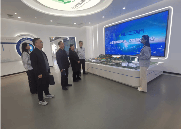 在三立电气技术副总王晓涛的陪同下,李锁牢一行首先走进企业展厅,通过观看专题宣传片、聆听产品介绍,系统了解了企业的发展历程、核心技术、市场布局及未来战略规划。随后,一行人深入生产车间,实地察看了智能化生产线的运行流程、核心工序的作业标准及产品质量管控体系,与一线技术骨干亲切交流,详细询问了岗位设置、技能需求及人才培养痛点。